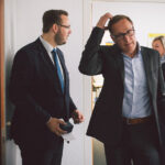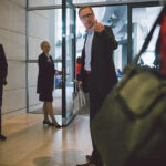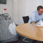 Am Donnerstag war dann soweit. Ab in den Zug, denn in Berlin wartete Roy und ein voller Terminkalender. Was ich hier eigentlich fotografieren würde, war mir bis zur Ankunft gar nicht klar. Die Dinge sollten sich einfach entwickeln und hoffentlich Motive liefern – auf jeden Fall keine Shake-Hands-Presse-Fotos. Im Vorfeld hatte ich nur zweimal mit dem Büro in Berlin telefoniert und wusste schließlich ein paar Programmpunkte des Tages. Also rein in den Bundestag, durch den Sicherheitscheck, Besucherausweis angesteckt, und dann ging es auch schon los. Zum Einsatz kam übrigens genau eine Kamera und ein 35 mm Objektiv – viel mehr hatte ich auch nicht mit (ein Beweisfoto). Und das war auch gut so, denn jedes Gramm mehr wird man über den Tag merken. Es kam dann doch mehr auf Schnelligkeit an.