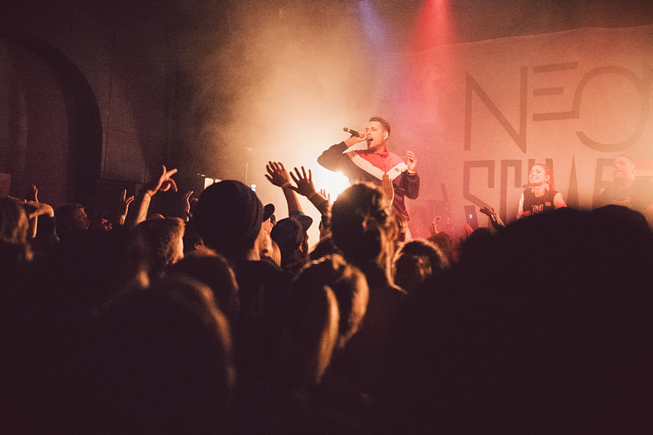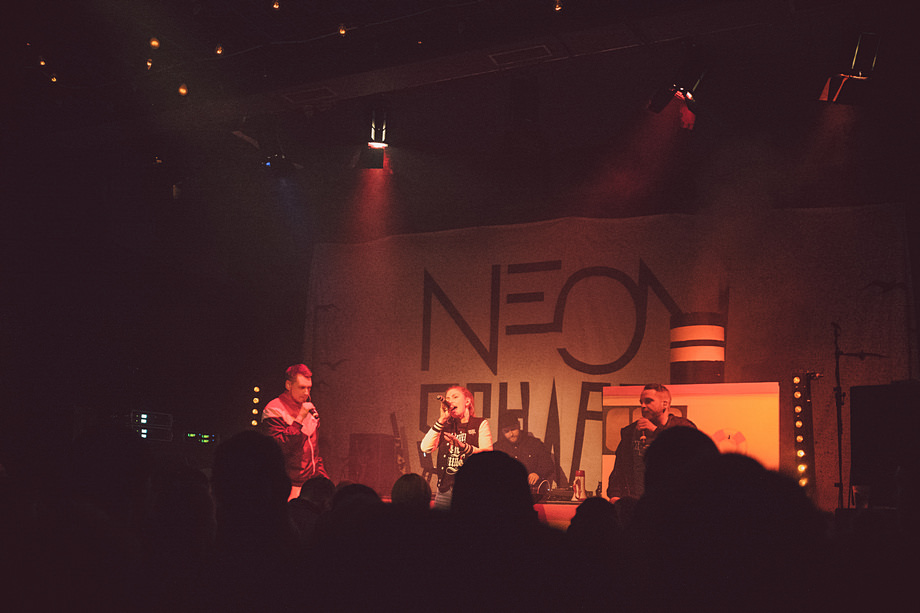Beim gleichen Label wie FSF ist auch Neonschwarz und so kam es dazu, dass die Göttingen 05 Fanszene, die solche Konzerte veranstaltet, auch diese Combo organisieren konnte. Hinter Neonschwarz verbergen sich die Hamburger Rapper Johnny Mauser, Captain Gips, Marie Curry und (als DJ) Spion Y.
