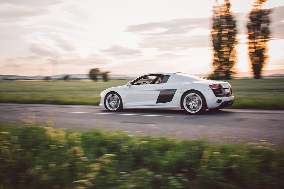 Eigentlich fotografiere ich Autos jetzt nicht oft, aber ich muss sagen, es macht auch mal Spaß solche Gefährte abzulichten. Zunächst waren wir in einem kleinen (nennen wir es) Park hier in der Umgebung. Später düsten wir als Kolonne (ich kam mir mit meinem Golf nicht wirklich toll vor hierbei, wie man sich denken kann) auf einer Landstraße herum. Dort war es dann auch möglich von R8 zu R8 ein paar schnellere Fotos zu machen. Überhaupt nicht einfach, aber für den Anfang war ich sehr zufrieden.