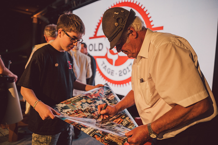 Am Freitag fand die Auftaktveranstaltung auf dem Gelände des PS.SPEICHER statt. Hier waren auch drei Rennsportlegende geladen, die allerhand schöne Geschichten aus ihrer Laufbahn zum Besten gaben. Sehr unterhaltsam und echt gut.