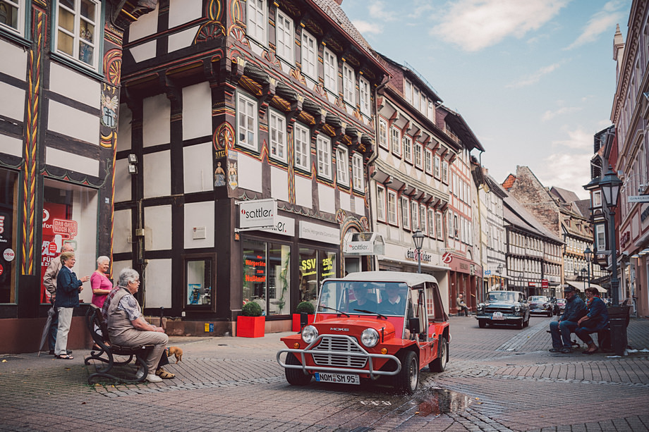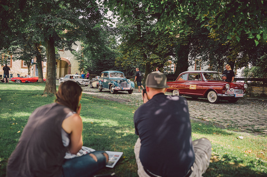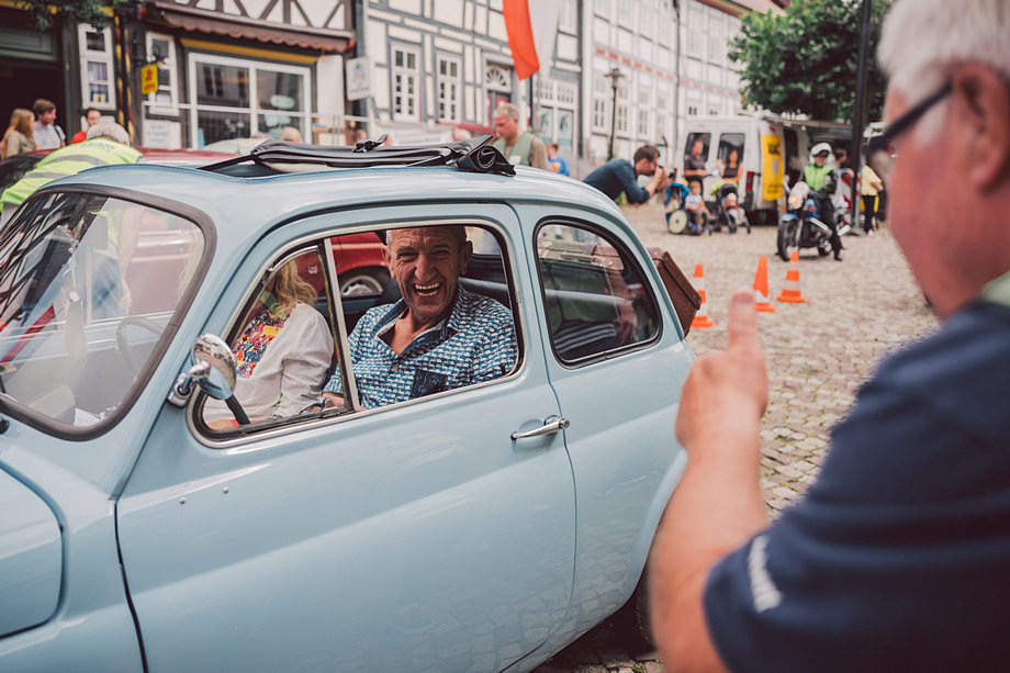 Als es dann ein paar Wochen vor der Veranstaltung schließlich zu ersten Gesprächen kam über den Umfang und was alles geplant sei, wurde man doch leicht nervös. Muss man ja auch mal zugeben. Sicher, Fotos bei Veranstaltungen sind kein Problem, das gab es ja nun schon häufiger und mittlerweile kenne ich fast alle Mitwirkenden dort. Aber es war eben keine einfache Veranstaltung über drei Tage, denn es galt am Samstag die komplette Oldtimer Rallye mit 120 Fahrzeugen von Einbeck nach Harste und zurück mitzufahren, zu fotografieren und auch zu filmen. Challenge accepted.