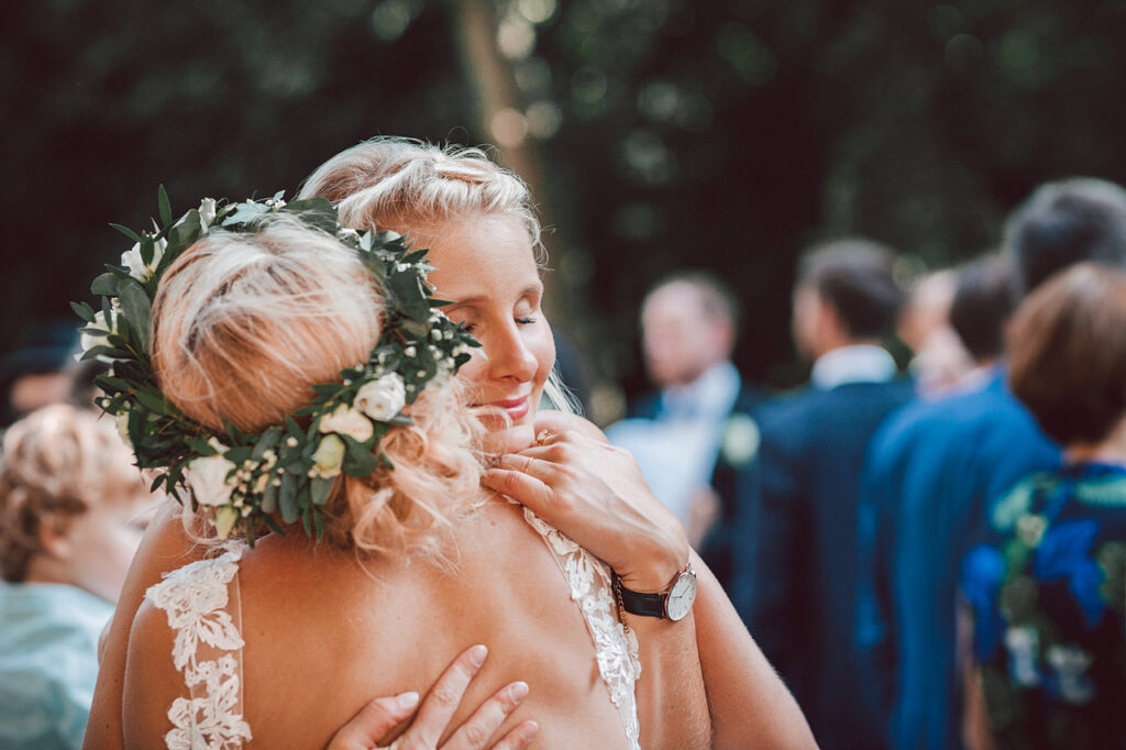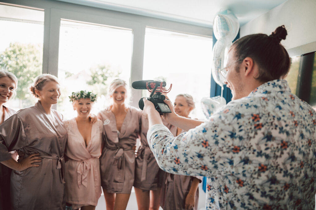 Im Sommer bei gefühlten 35 Grad haben wir eine freie Trauung begleitet. Gestartet wurde mit dem Getting-Ready der Braut. Grundsätzlich immer eine gute Idee, denn die Stimmung ist dabei einfach super. Bei dieser Mädelstruppe machte es aber auch besonders viel Spaß 🙂