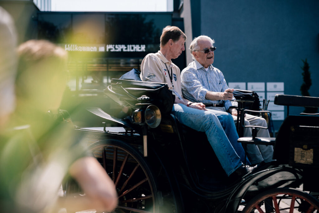 Ich denke ein weiteres Highlight in diesem Jahr war diese Dokumentation. Die Rallye Legende Walter Röhrl war anlässlich der Olympia Rallye 2022 wieder unterwegs. Dieses Mal kam er beim Zwischenstopp auch am PS-Speicher in Einbeck vorbei. Hier gab es ein unterhaltsames Gespräch mit dem Stifter Karl-Heinz Rehkopf, der Walter Röhrl anschließend zur Fahrstunde mit der Benz Victoria einlud.