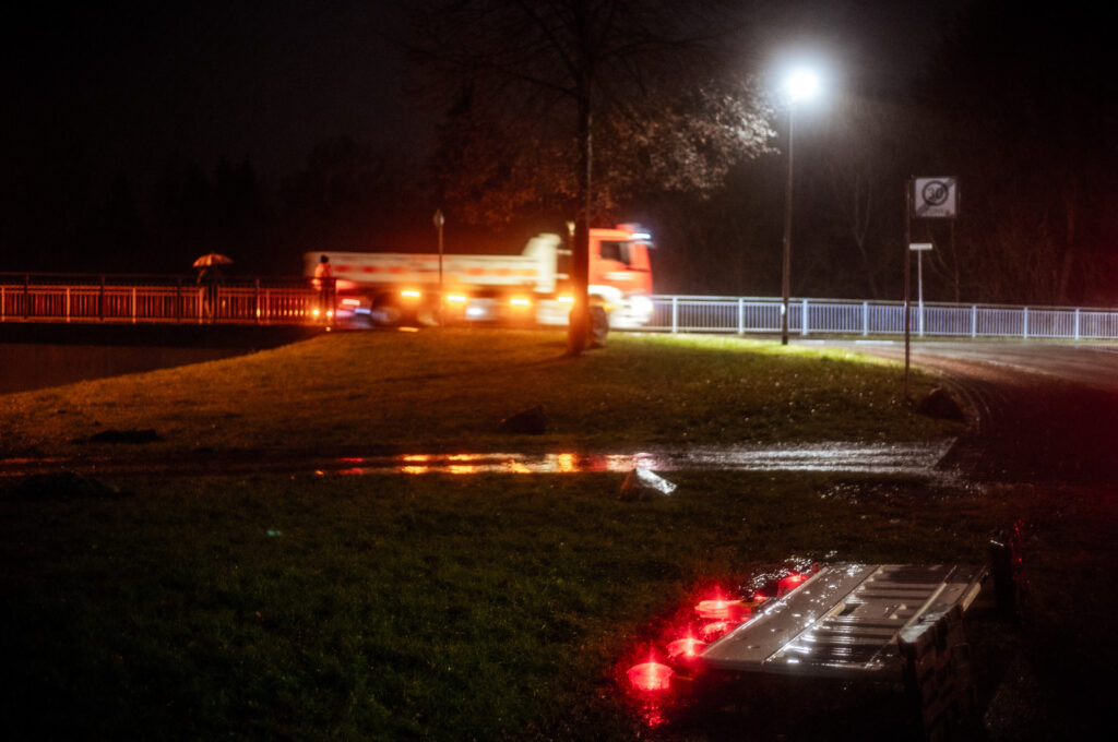 Es sind allerhand Rettungskräfte unterwegs, sperren Straßen, füllen Sandsäcke und sichern wo es geht. Das haben wir hier 1998 das letzte Mal in dieser Form gehabt. Damals war es allerdings noch schlimmer. Hoffen wir mal, dass wir diesen Punkt hier nicht erreichen.