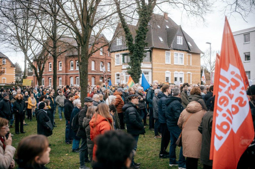 Am 10. Februar gingen hier über 1.300 Menschen auf die Straße und zeigten Flagge und viele Schilder gegen rechts. Eine wirklich beeindruckende Teilnehmerzahl und eine schöne laute und bunte Demonstration war es, zu der ein breites Bündnis aufgerufen hatte.
