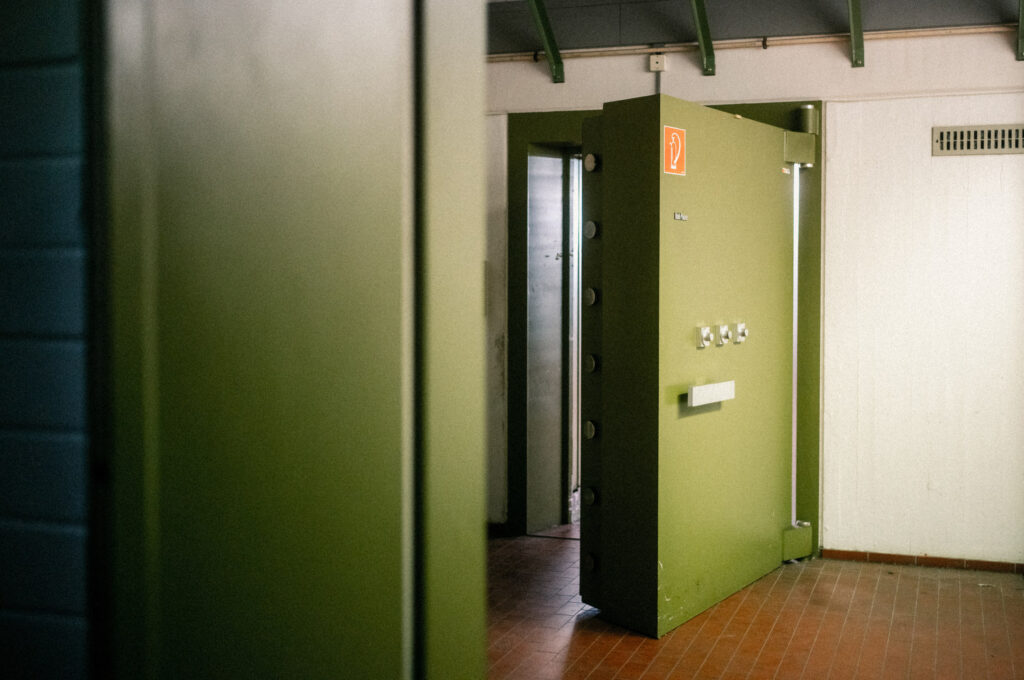 Ein Lostplace mitten in der Stadt ist es quasi. Allerdings ein sehr gut erhaltener Platz mit guter Infrastruktur. Früher wurden hier wertvolle Dinge gedruckt, daher auch der riesige Tresor im Keller.