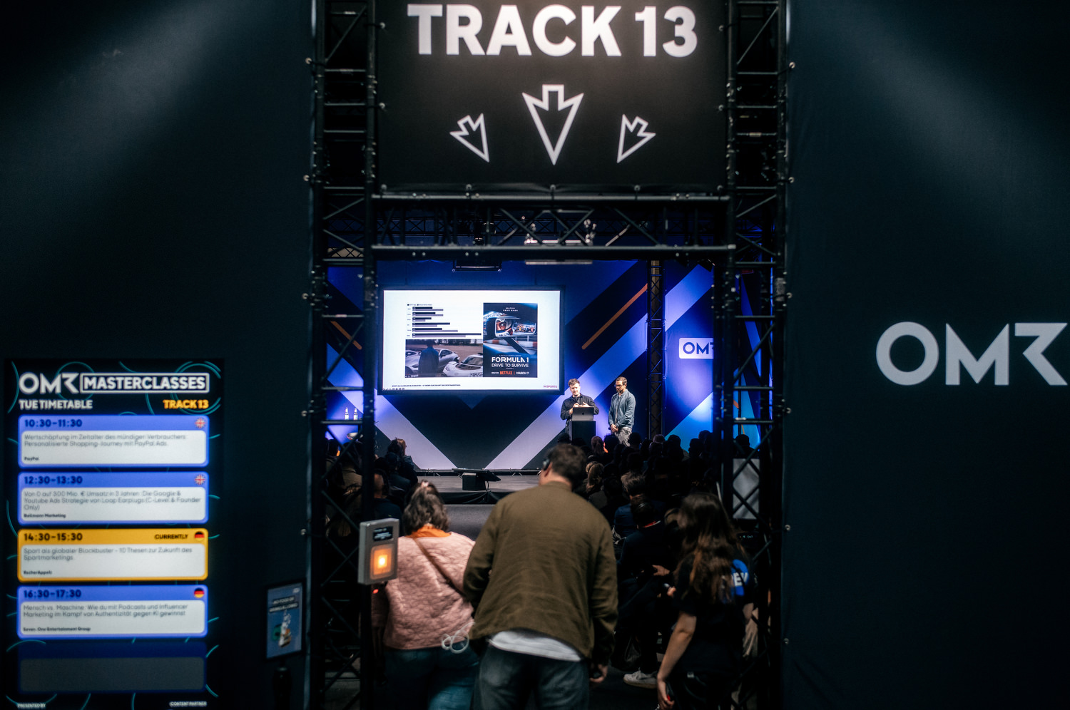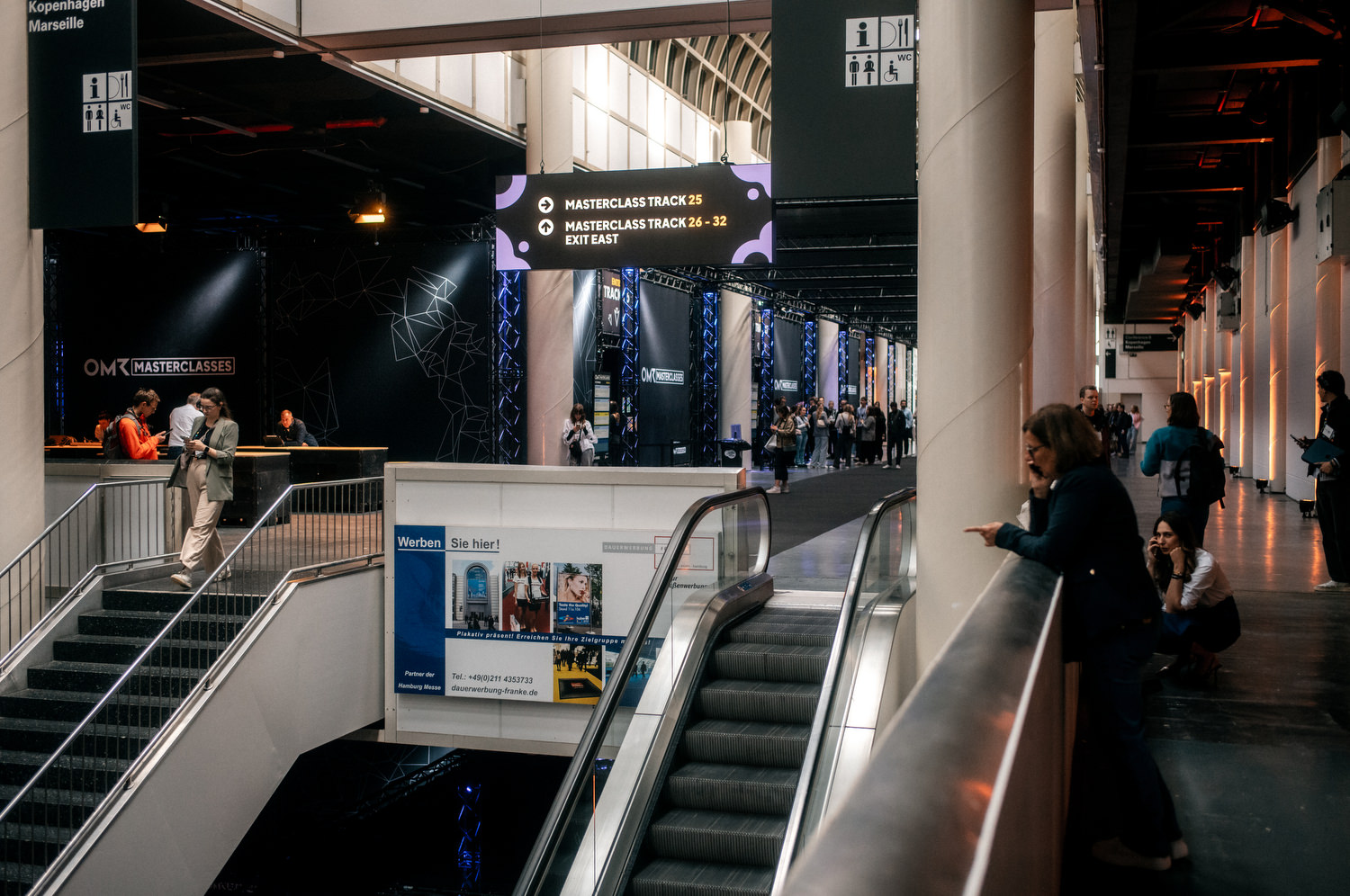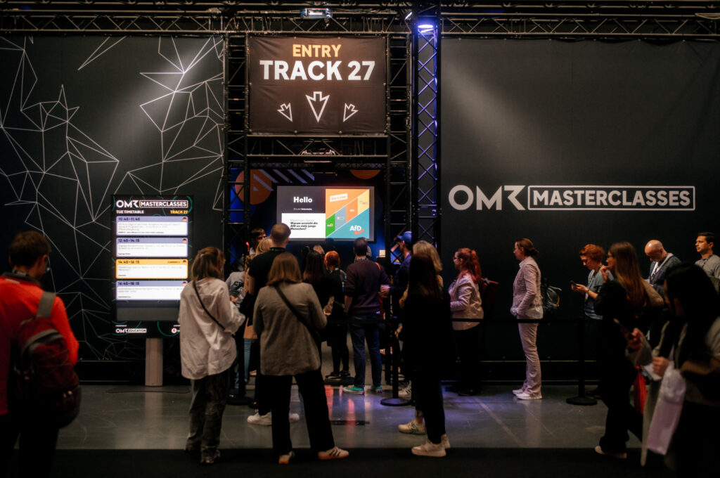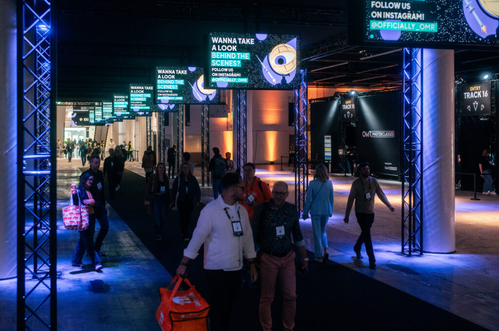 Der ruhigste und vermutlich inhaltlich spannendste Part ist der Bereich der Masterclasses. Diese hat ja nun jeder inkl. im 500€ Ticket. Allerdings muss man diese im Vorfeld richtig buchen. Man kann sich maximal acht auswählen und diese sind dann auch in der wirklich netten OMR App vermerken usw. Mit dem Armband loggt man sich dann ein. Das ist alles gut geregelt. Und dieses Jahr war es auch spontan oft möglich noch reinzuschauen. Diese Klassen sind dann auch ganz dezent beleuchtet, alles ruhig, Kopfhörer auf und den Speakern lauschen. Das habe ich ein paar mal genutzt, war gut und man hat mal fokussiert zugehört.