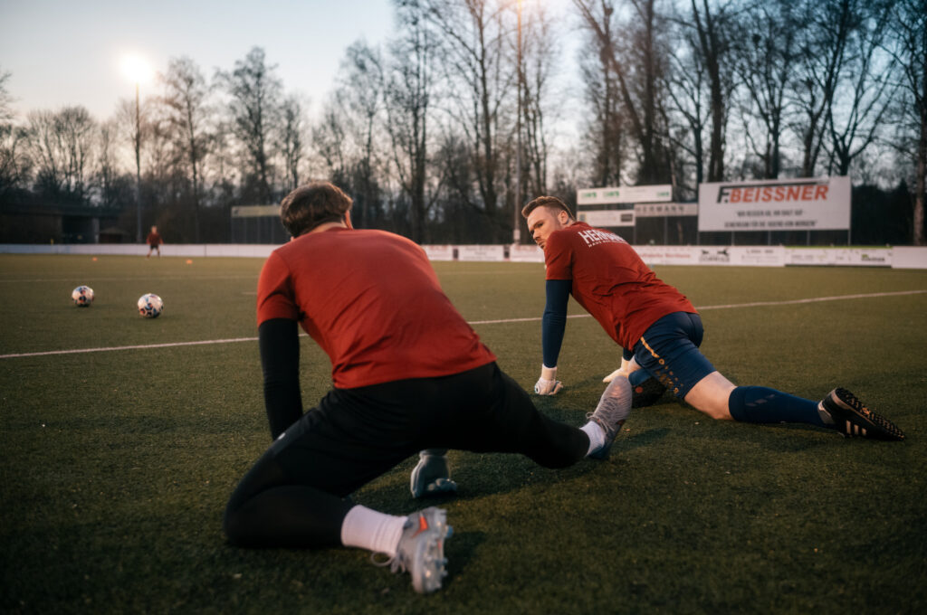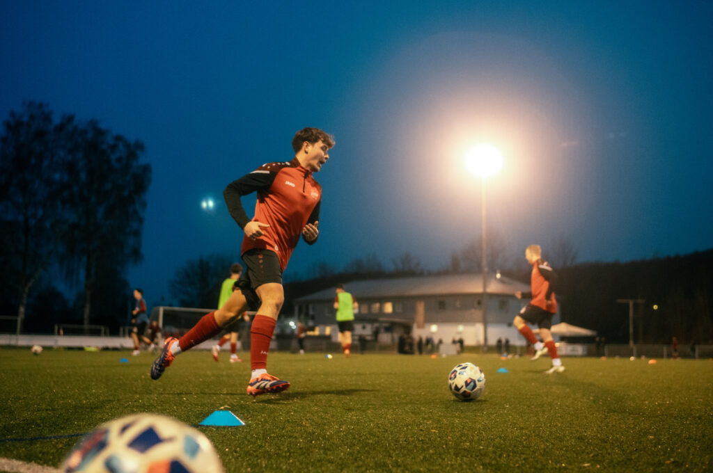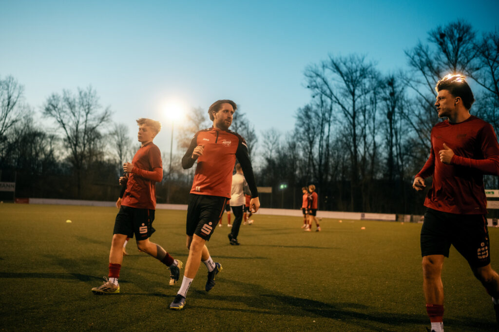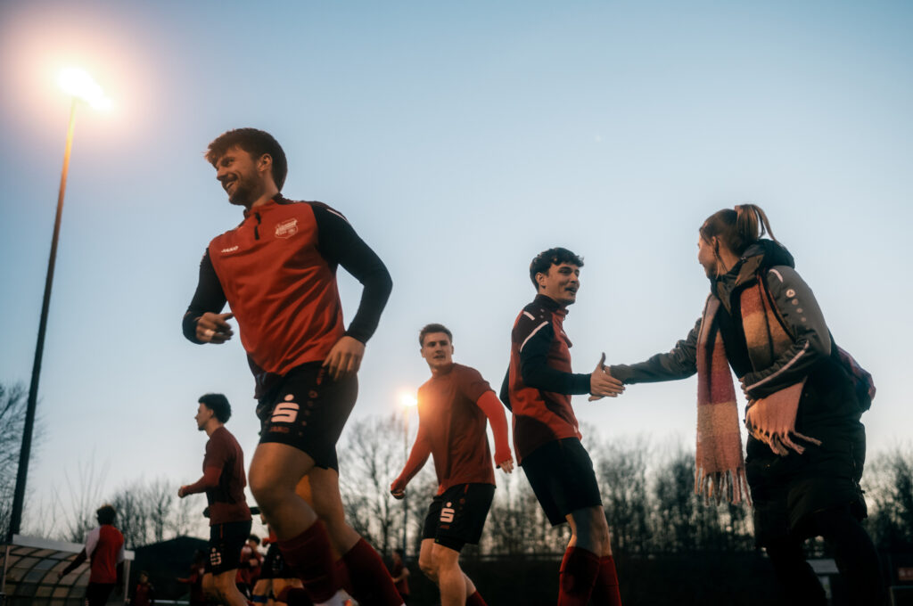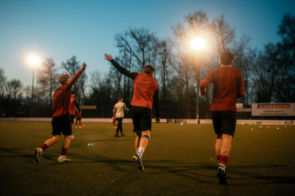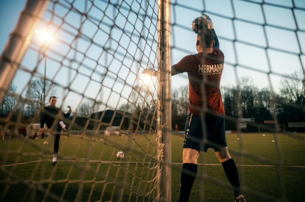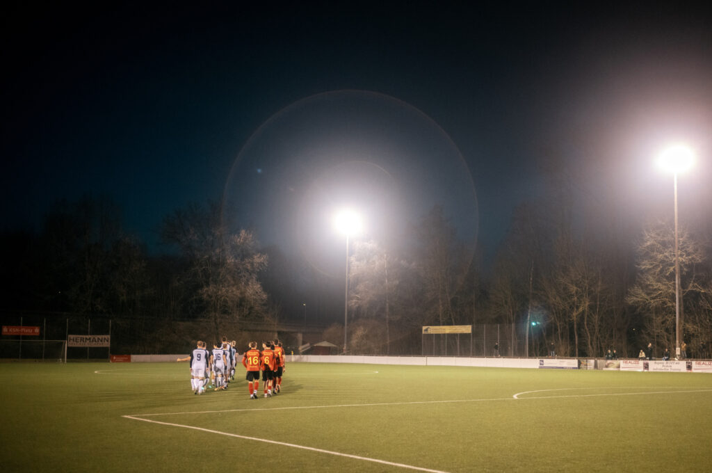 Nun gut, es ist schon eine kleine Umstellung vom kompakten Handballfeld zum sehr weitläufigen Fußballplatz. Vielleicht muss ich mir dafür nächstes Mal ein 300mm Teleobjektiv ausleihen – öfter mal was Neues und so 😉 Aber ich bin sehr begeistert wie schön es mit der Leica und dem Licht ging. Ich gebe gerne zu, das ich so einigen Ausschuss mit dem manuellen Messsucher produziert habe und nicht alles ist 100% scharf, aber trotzdem schön. Gerade die Fotos vom Aufwärmen machten echt Laune. Guter Stichpunkt: es war sooo kalt! Ich hatte leider nicht die dickste Jacke an und in Halbzeit zwei fühle es sich an wie 0 Grad (Reallife: 5 Grad) – man oh man. Da tat die Bratwurst am Ende dann doch nochmal gut.