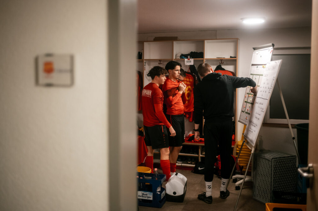 Ich war primär mit meiner kleinen Leica M11 und 35mm unterwegs und durfte überall dabei sein. Perfekt, genau so hatte ich mir das vorgestellt. Für die Spielszenen hatte ich noch die Canon R5 II und ein 70-200mm Objektiv dabei. Das war allerdings nicht mein Fokus, denn für die Presse-Sportfotos waren ja ohnehin Kollegen am Start.